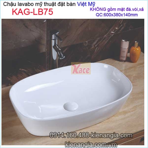 • Chậu lavabo ĐẶT BÀN mỹ thuật Việt Mỹ KAG-LB75,lavabo cho nhà phố,lavabo cho khách sạn,,lavabo cho căn hộ...màu trắng sáng,dễ vệ sinh,giá rẻ KIẾN AN GIA-0914.160.488.Bạn có thể chọn vòi lavabo lạnh,vòi nóng lạnh hay vòi âm tường theo nhu cầu sử dụng.Nhiều mẫu mã,nhiều kiểu dáng và thương hiệu chiết khấu cao tại KIẾN AN GIA