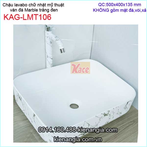 Chậu lavabo đặt bàn vân đá Marble trắng vân đen KAG-LMT106
