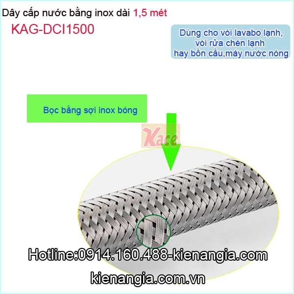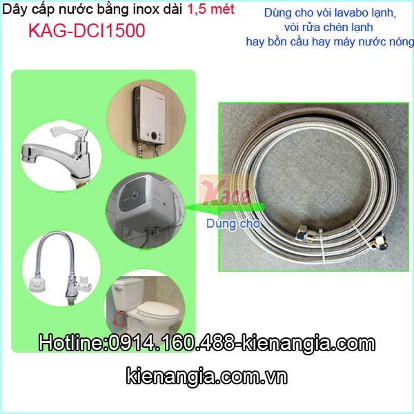 • Dây cấp nước inox 304 dài 1,5 mét KAG-DCI1500 2 đầu tán inox 304 sáng bóng,chắc chắn lắp ren D21 cấp nước cho máy nước nóng,bình nóng lạnh,vòi rửa mặt chậu lavabo,vòi rửa chén...giá rẻ KIẾN AN GIA-0914.160.488.XEM CLIP DÂY CẤP NƯỚC tại  ĐÂY   ĐÂY HOẶC ĐÂY