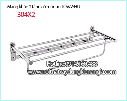 Giá treo khăn đa năng inox 304 TOVASHU KAG-304X2,kệ máng khăn 2 tầng có móc áo dùng cho bồn tắm,Máng khăn 2 tầng đa năng inox sus304 phòng tắm đứng sáng bóng,kiểu dáng đạp,không gỉ sét chiết khấu cao KIẾN AN GIA.Bạn có thể chọn mua kệ khăn đa năng 3 trong 1 có máng khăn và móc áo,thanh treo khăn đơn inox giá rẻ,vắt khăn đôi tiện lợi ...tại 0914.160.488.Xem video sản phẩm THẬT TẠI ĐÂY Thanh treo khăn TOVASHU TẠI ĐÂY