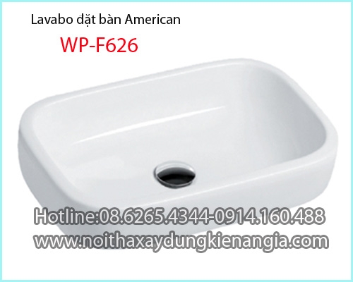 • Lavabo đặt bàn  American Standard WP-F626,Chậu nổi American Standard,chậu lavabo đặt trên mặt bàn đá chính hãng men sứ sáng bóng khó bám bẩn sang trọng,hiện đại phòng tắm khách sạn,nhà phố,resort,căn hộ .Có nhiều mẫu lavabo đặt bàn tròn,oval,hình vuông,chữ nhật tại KIẾN AN GIA-0914.160.488