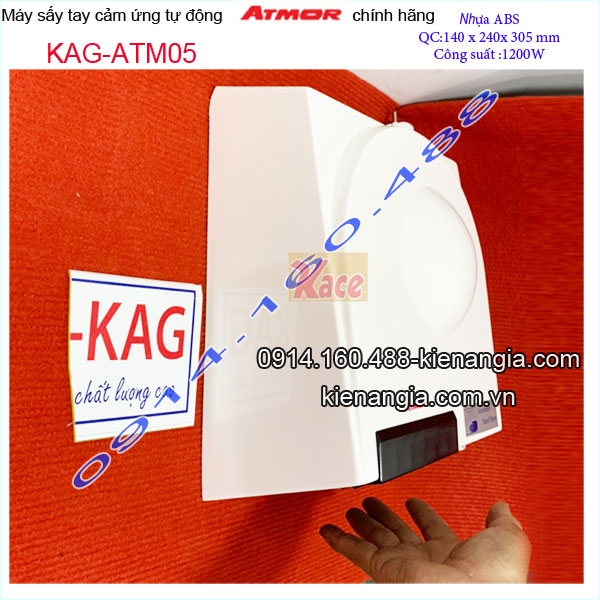 • Máy sấy tay cảm ứng tự động ATMOR chính hãng KAG-ATM05 ,máy sấy khô tay dùng điện ATMOR,máy hong khô tay bằng điện cảm ứng ATMOR chính hãng.Vỏ bằng nhựa ABS có độ bền cao.Độ ồn nhỏ.Sấy khô trong 40 giây.Chế độ tự bảo vệ khi quá nóng.Điều chỉnh được khoảng cách cảm ứng từ 0-35cm.Công suất: 1200W.Tốc độ gió > 12m/s.Nhiệt độ không khí: 65± 15°C. Sử dụng phổ biến ở nhà hàng, khách sạn, quán cafe, văn phòng, nơi công cộng,nhà phố,căn hộ ,trường học,bệnh viện...Chiết khấu cao KIẾN AN GIA-0914.160.488.XEM CLIP SẢN PHẨM THẬT TẠI ĐÂY