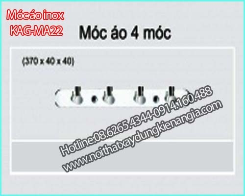 • Móc 4,móc áo I4 Inox KAG-MA22 cao cấp ,móc áo phòng tắm khách sạn,gia đình,văn phòng,nhà cho thuê cao cấp,nhà phố,resort,biệt thự,..Bạn có thể chọn mua tại KIẾN AN GIA 0914160488 móc áo phòng tắm,phòng ngủ,hộp giấy vệ sinh,giá treo khăn,kệ ly,kệ bàn chải để trang bị cho gia đình,công trình