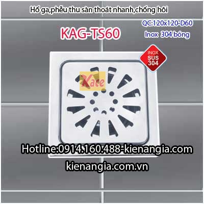 • Phễu thu phòng tắm vách kính sus 304 120x120 D60 KAG-TS60 bằng inox 304 bóng ,mặt hoa cúc sang trọng,xinh xắn,giá rẻ KIẾN AN GIA dùng cho ống D60 cho phòng tắm gia đình,ban công,sàn nước nhà phố,khách sạn,nhà cho thuê,phòng trọ ...rất đẹp,không gỉ sét,dễ vệ sinh,thoát nước nhanh,chống hôi,chặn rác,chặn tóc tốt.Mua ngay 0914.160.488 hố ga 120x120,Phễu thu nước 150x150,Thoát sàn dài TOTO,INAX,Caesar,KAG,Atmor...XEM CLIP SẢN PHẨM THẬT TẠI ĐÂY.