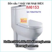 Bồn cầu liền 1 khối Imex IM-6153​,bệt két liền IMEX-JAPAN chính hãng chiết khấu cao KIẾN AN GIA.Thiết bị vệ sinh IMEX Việt Nhật men sứ sáng bóng,kháng khuẩn,dễ vệ sinh,bộ xả tiết kiệm nước