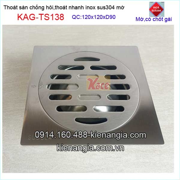 Phễu thoát sàn chốt gài vuông 12x12cm KAG-TS138 D90, Phễu thu nước inox 304 thoát sàn nhà tắm inox dày thoát nhanh chống hôi tốt