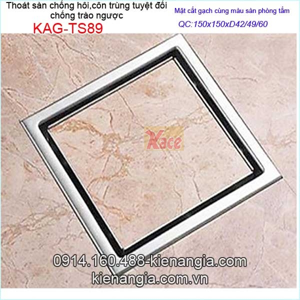 • Thoát sàn mặt cắt gạch 150x150 D424960-KAG-TS89,phễu thoát sàn phòng tắm chống hôi,chống trào ngược,chống côn trùng tuyệt đối rất đẹp,giá tốt KIẾN AN GIA-0914.160.488 dùng cho ống D42,D49,D60,D90.Bạn có thể chọ qui cách phễu thoát sàn 100x100 (TS87),120X120(TS88),150X150(TS89) .XEM CLIP SẢN PHẨM THẬT TẠI ĐÂY