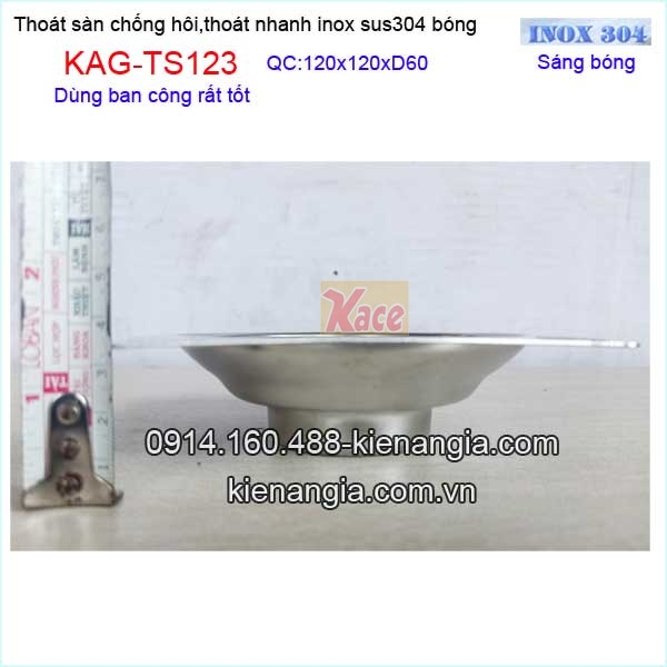 Thoát sàn phòng tắm,ban công  quả táo inox 304 bóng 120x120xD60 KAG-TS123